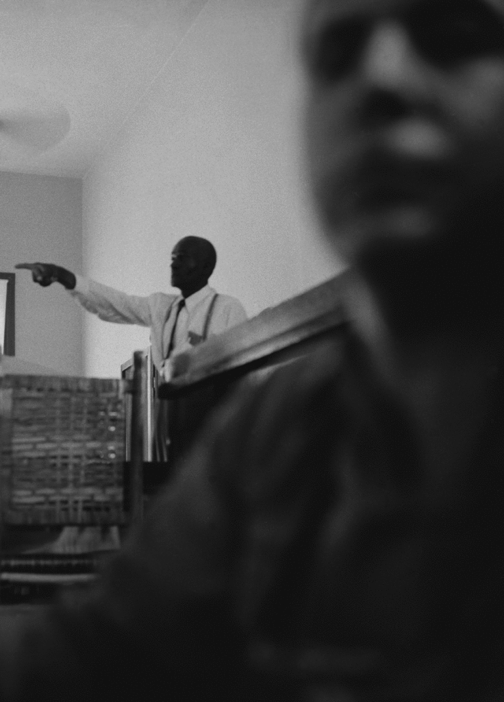 This photograph of Mose Wright testifying visualizes the trauma that Black people endured under the oppressive Jim Crow system, but also their resistance. Regardless of the trials (literally) and tribulations that Wright endured, resilience triumphed over fear.